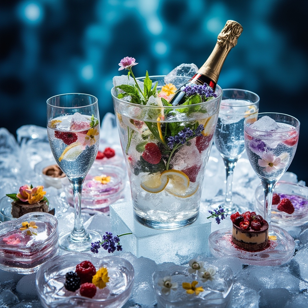 🥂 İçecek ya da Meyve Sunumu için Buz Kovasında Donmuş Aranjman